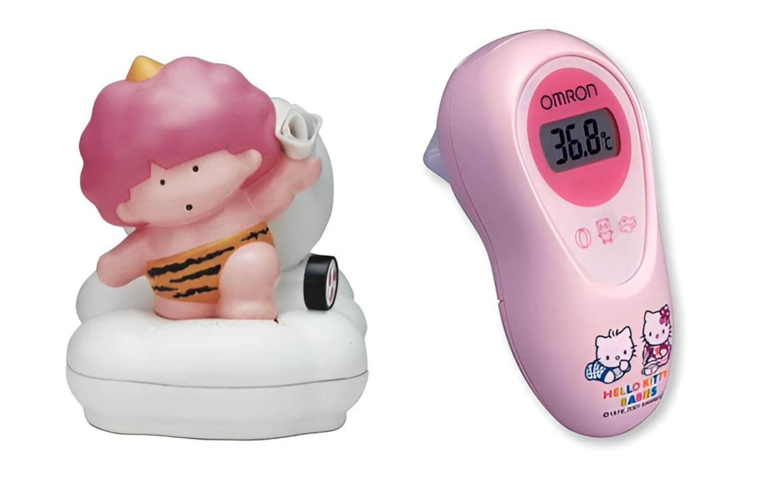 ハローキティベイビーズ」(写真右)など、乳幼児も嫌がらずに検温してもらえるような工夫をしています。