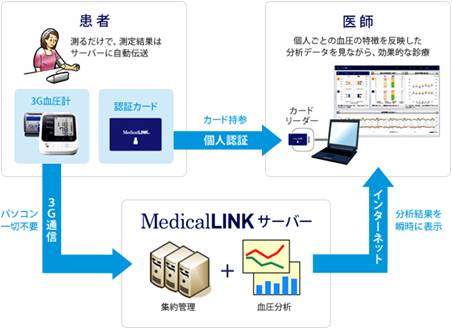 オムロン ヘルスケア株式会社(本社所在地:京都府向日市、代表取締役社長:宮田喜一郎)は、ITを活用して、家庭血圧を医師に簡便・詳細に伝えることによって、高血圧の治療をサポートする医療機関向けの血圧分析サービス「Medical LINK(以下メディカルリンク)」を5月10日よりスタートします。