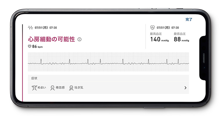 - スマートフォンアプリ「OMRON Connect(オムロンコネクト)」で心電図波形を解析。「心房細動の可能性」など6パターンの解析結果をお知らせ