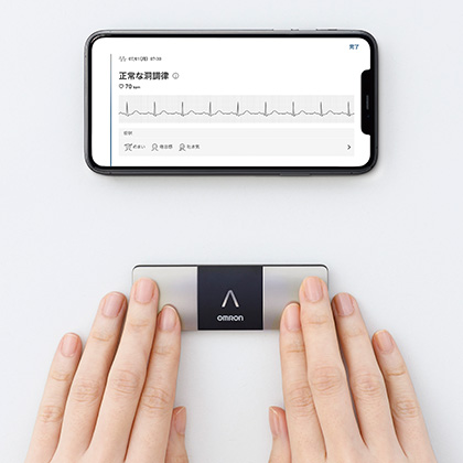 - スマートフォンアプリ「OMRON Connect(オムロンコネクト)」で心電図波形を解析、心房細動の可能性など6パターンの解析結果をお知らせ