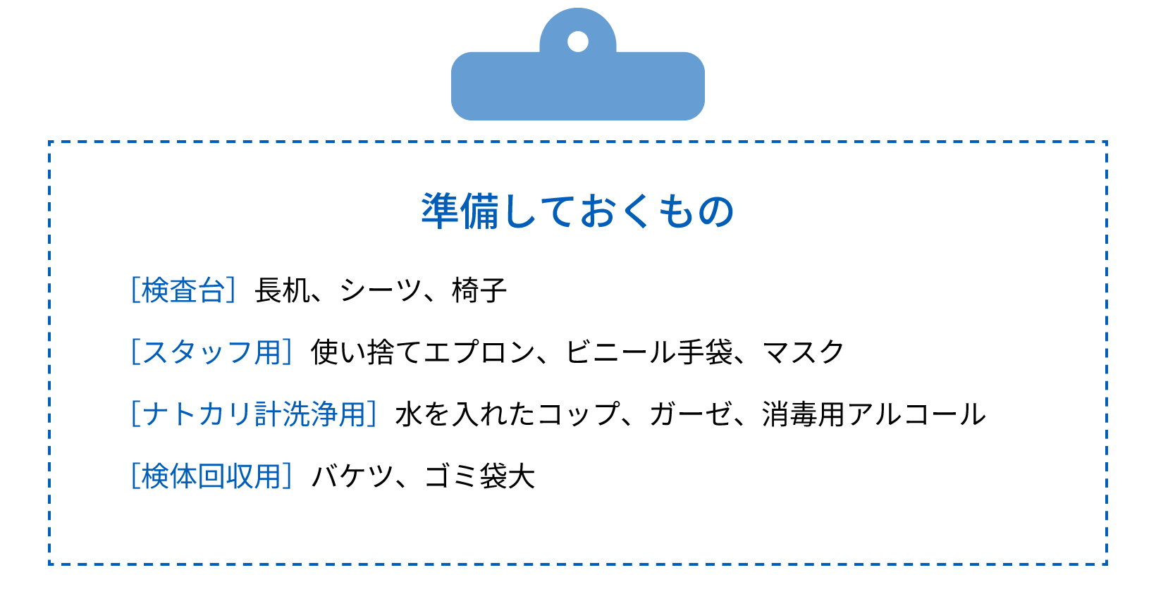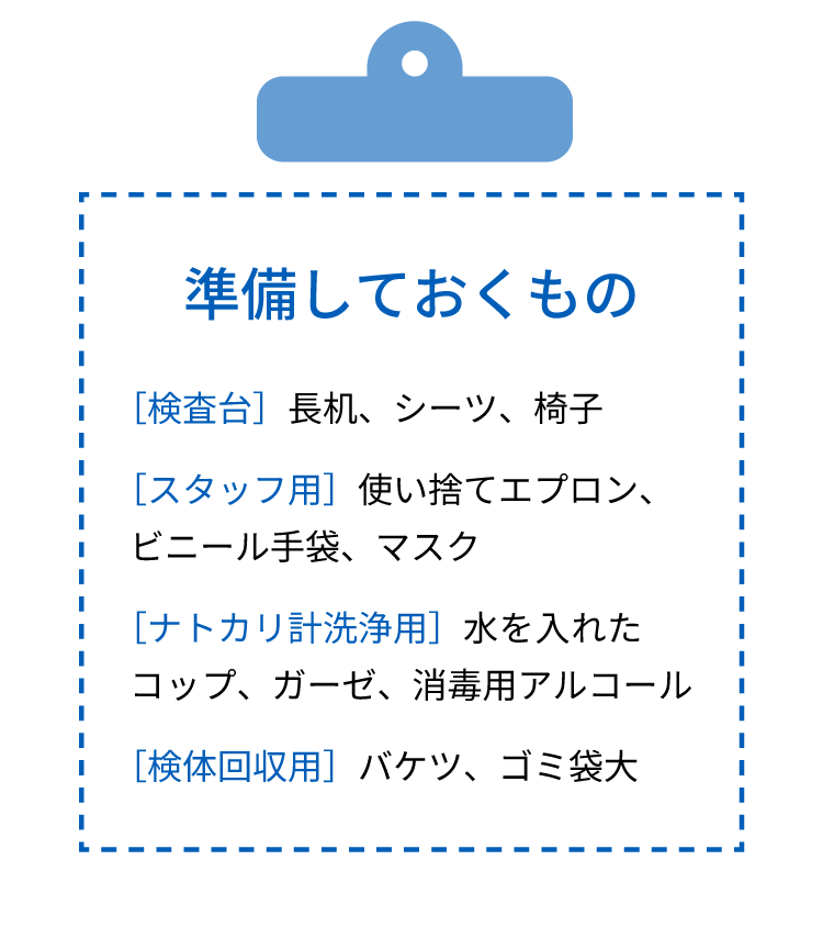 健診開始前にセッティングを行い、健診中は測定と洗浄を実施