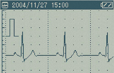 オムロン携帯型心電計は、医師による診療を前提とした、詳細な波形情報を大型画面にクリアに表示。双極1チャンネルで、12誘導心電計のV4相当部位の心電図波形を記録します。測定結果は5回分までを本体にメモリ保存できます。